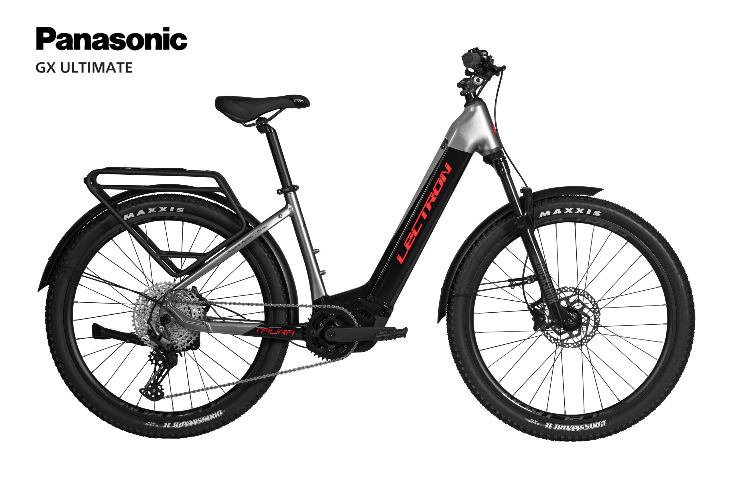 Lectron Taura PSX definuje novou třídu horských elektrokol s nízkým nástupem, perfektní výbavou a výkonným motorem Panasonic GX ultimate.Jízdní komfort a skvělá ovladatelnost je podtržena užitím vzduchové vidlice RockShox Judy Silver Boost se zdvihem 120mm a pevnou osou. Přesný brzdný účinek a hladký chod zajišťuje brzdový systém Shimano MT400 známý nejen svojí účinností, ale také nenáročností na údržbu. Lehký a pevný rám s pevnými osami v obou kolech a dvoustěnné ráfky s rozchodem 30mm plní nejpřísnější pevnostní nároky. Zárukou dlouhé životnosti jsou také precizně zpracované kliky a řetězové kolo od premiové značky Samox.