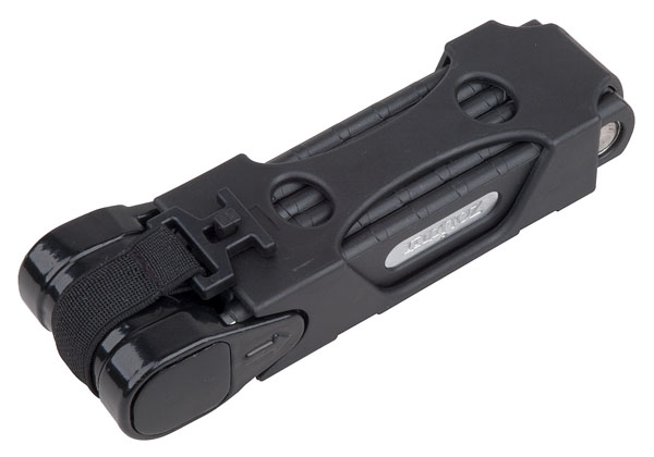 Kloubový skládací cyklistický zámek v pouzdře ,které lze uchytit k rámu kola pomocí šroubení na košík cykloláhve nebo kdekoli jinde pomocí pásků , masivní ocelové segmenty jsou spojeny pomocí lisovaných kloubů, segmenty jsou pokryté tenkou vrstvou plastu, aby nedocházelo k oděru laku rámu, ve složeném stavu má zámek rozměry 18 x 6 x 5 cm, délka zámku je 80 cm, rozměr 1 článku: 24 mm x 7 mm x 172 mm, obsah balení: 3 klíče ( 1 klíč s osvětlením), pouzdro na zámek, 2x pásek na montáž zámku na rám, hmotnost zámku včetně příslušenství 1200g